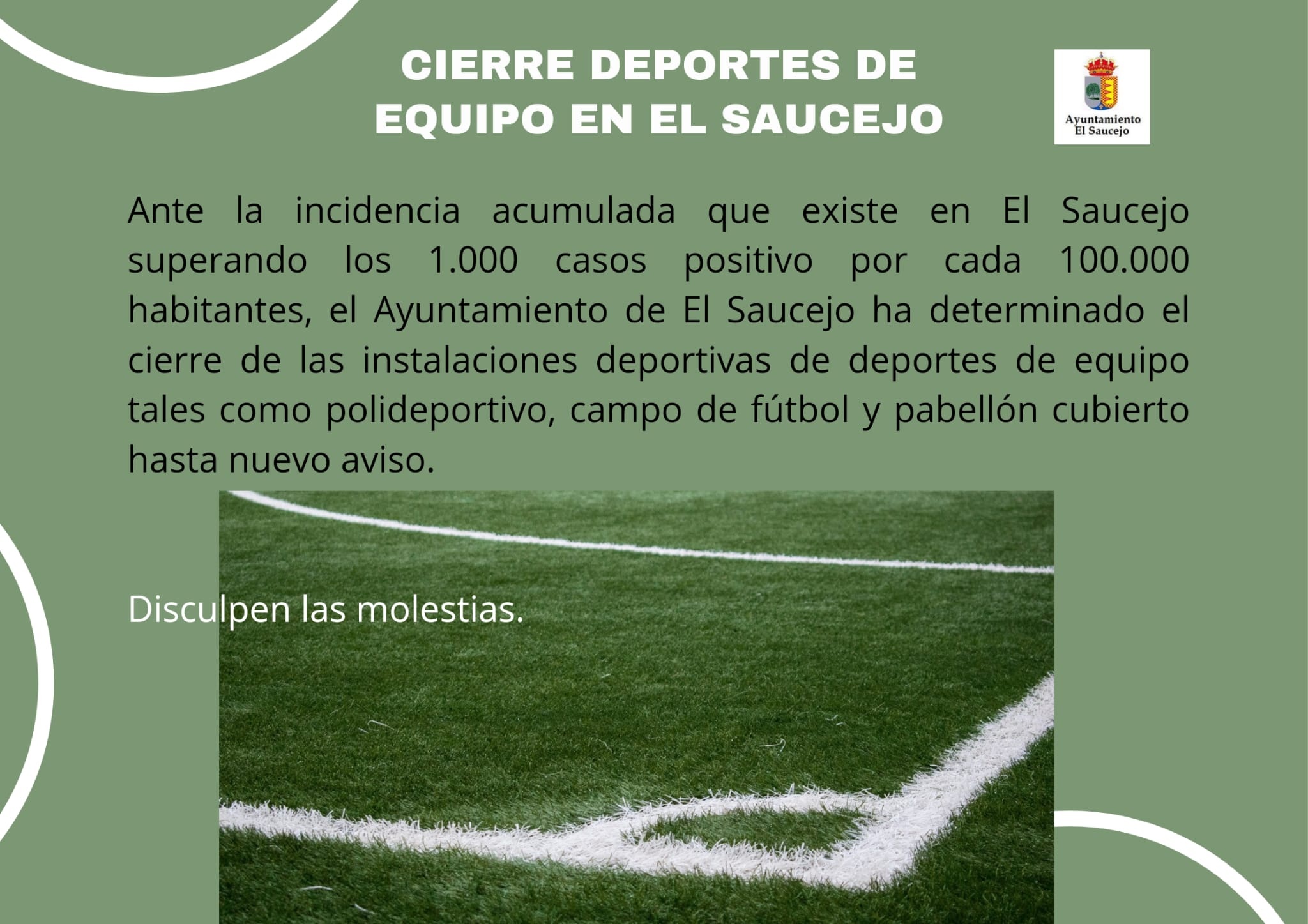 La piscina municipal de El Saucejo cierra durante dos días en el mes de agosto. El lunes 9 también cerrará el PDI.