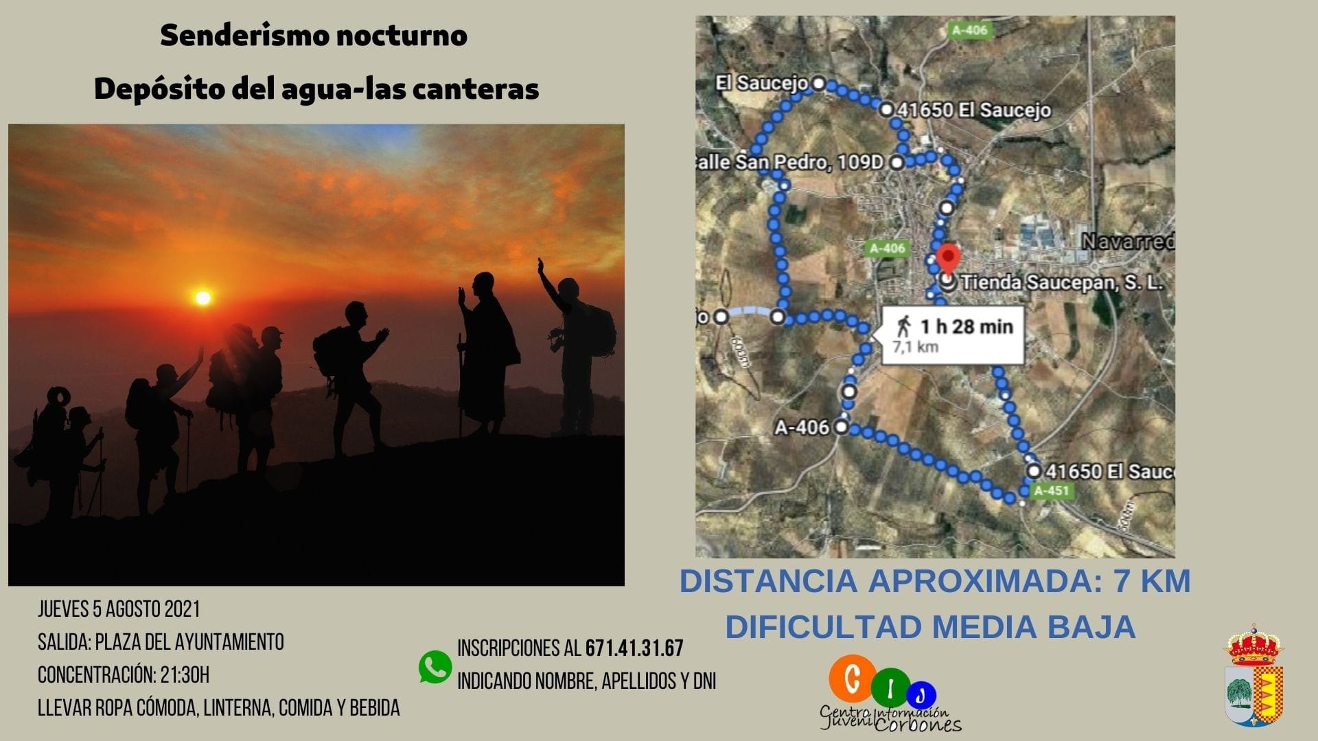 Esta noche, a partir de las 21:30h en la plaza del Ayuntamiento se realiza la salida para el sendero nocturno al depósito del agua-las canteras.