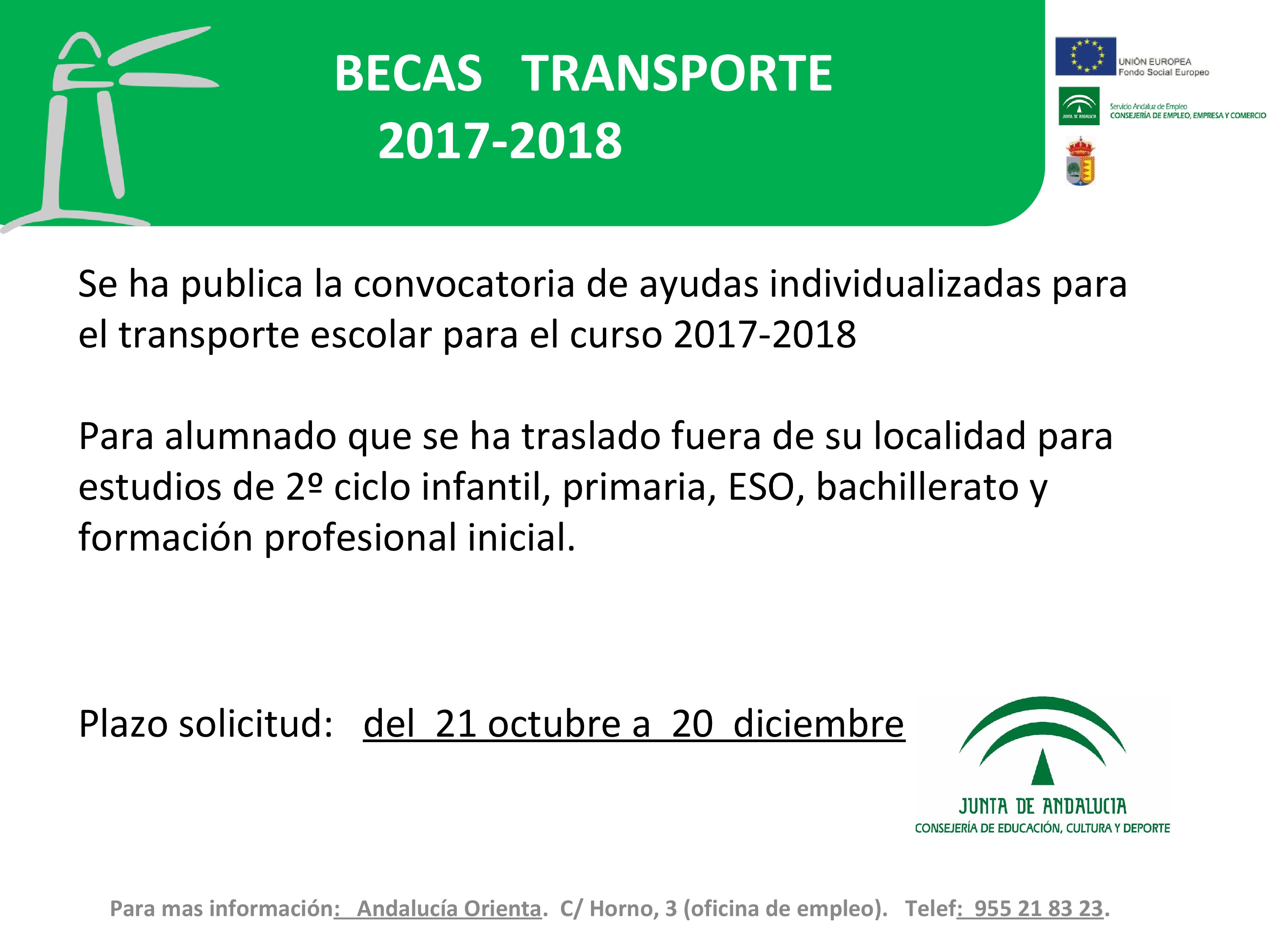Andalucía Orienta. C/ Horno, 3 (oficina de empleo). Telef: 955 21 83 23