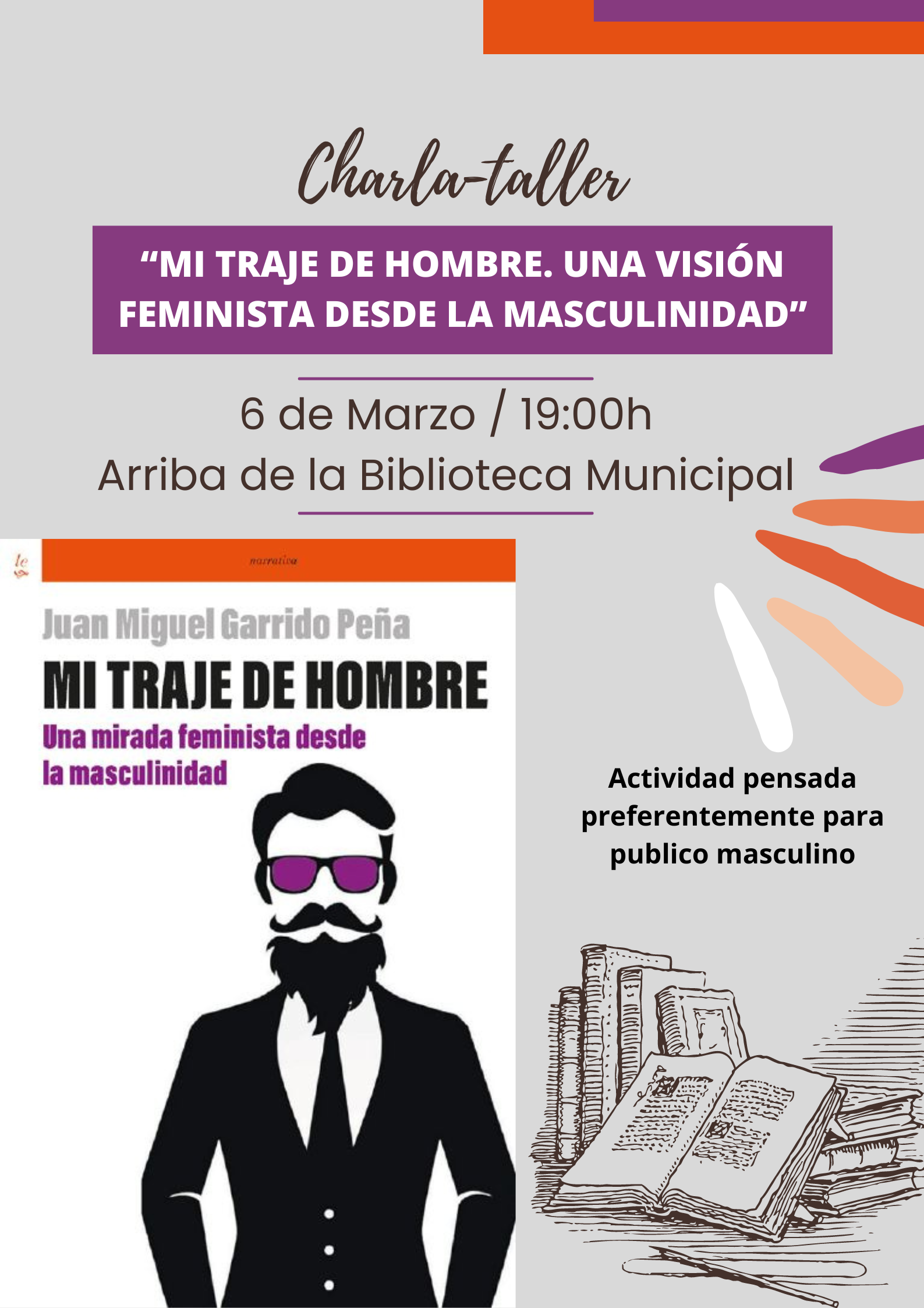 El próximo lunes 6 de marzo tendrá lugar una charla taller sobre igualdad de género. En esta ocasión, se da importancia al papel masculino para conseguir la equidad entre homrbes y mujeres.