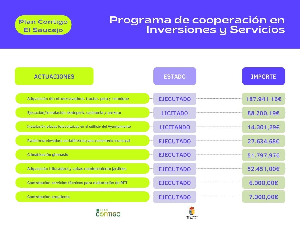 El Ayuntamiento de El Saucejo ha ejecutado más del 75% del presupuesto solicitado a la Excma. Diputación Provincial de Sevilla en el Programa de Cooperación en Inversiones y Servicios que cuenta con un total de 435.326,29€.