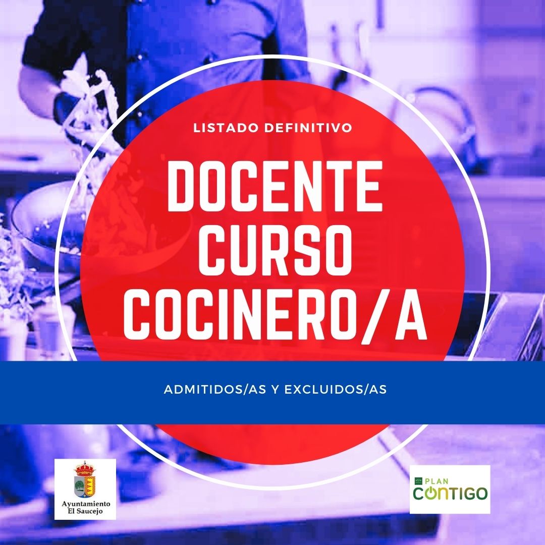 Por la presente se hace público el listado definitivo de docente del curso de cocina que va a impartir el Ayuntamiento de El Saucejo financiado por el Plan Contigo de la Excma. Diputación Provincial de Sevilla.