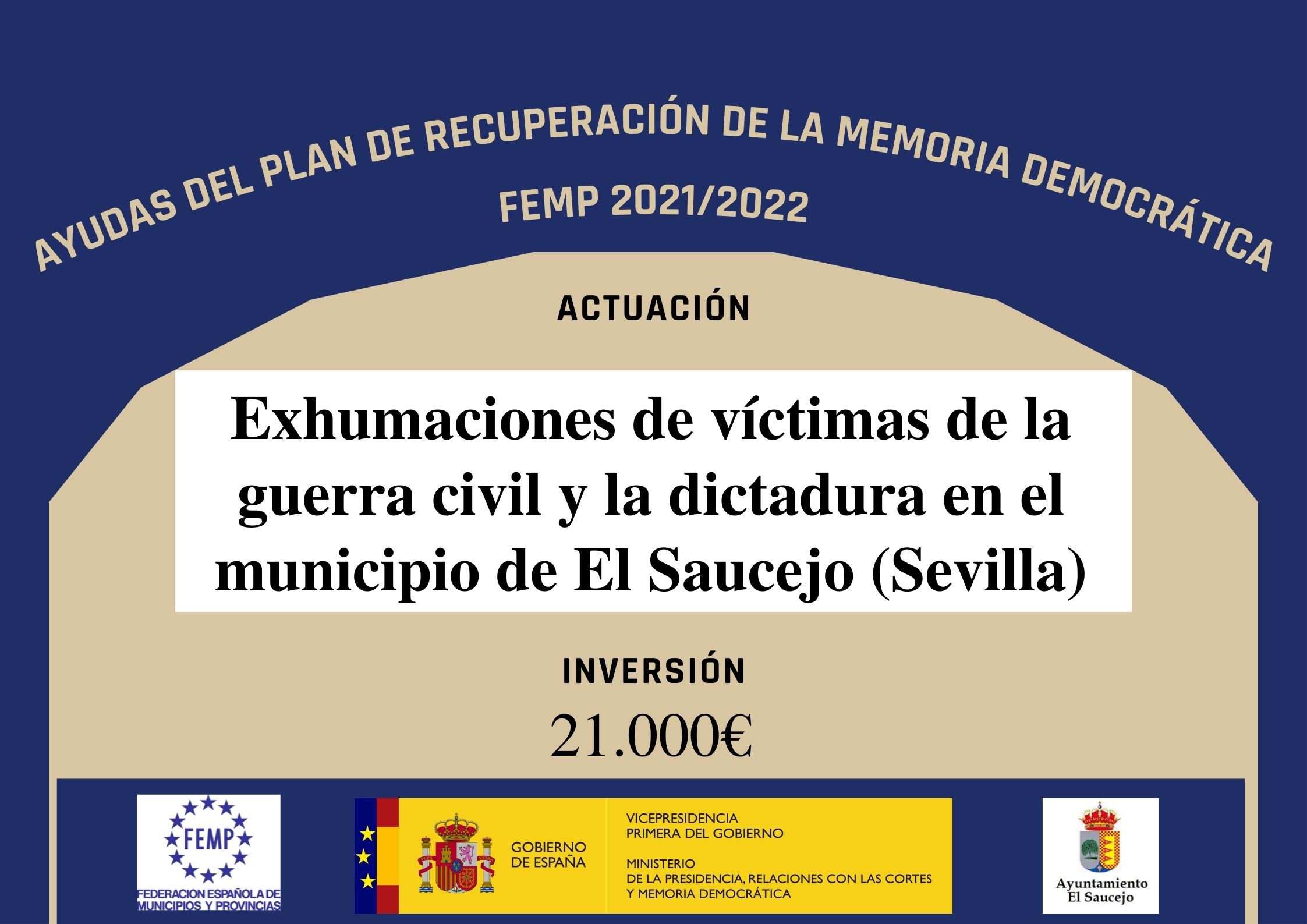 El Ayuntamiento de El Saucejo, atendiendo a la normativa vigente en relación a la Memoria Histórica y Democrática, pretende colaborar para completar los estudios en relación a las fosas y las exhumaciones, la identificación genética de Víctimas de la Guerra Civil española, sobre los mapas de fosas, los censos de víctimas y el análisis de los restos, sobre las fuentes orales, sobre la normativa, la regulación y los compromisos institucionales y sobre la gerencia y la gestión documental.