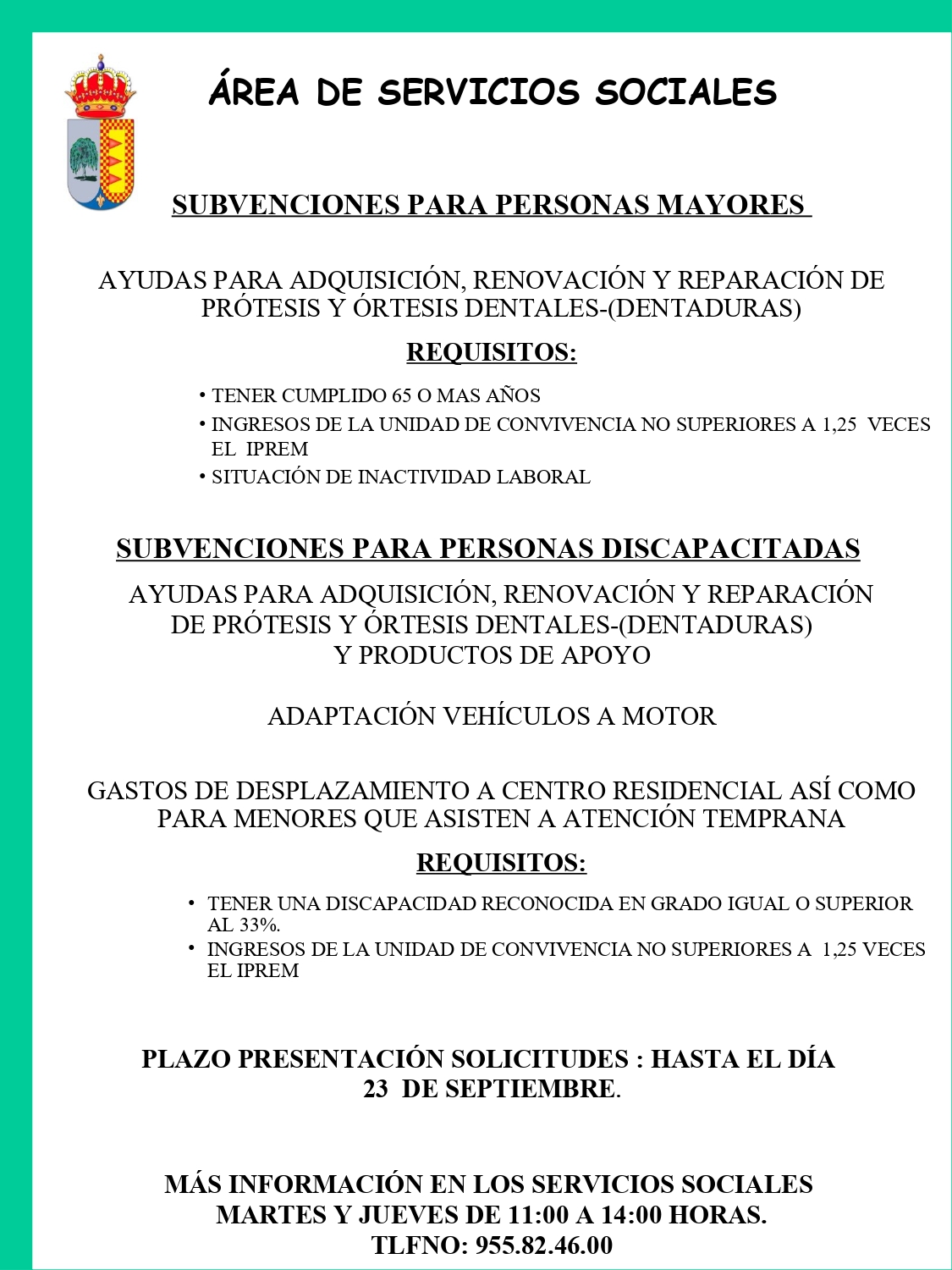 En la Orden de 31 de agosto de 2021, por la que se convocan subvenciones, en régimen de concurrencia competitiva, en materia de personas mayores, personas con discapacidad [...] publicada en el BOJA de hoy día 3 de septiembre de 2021 se abre plazo de solicitud de las ayudas del año 2021.