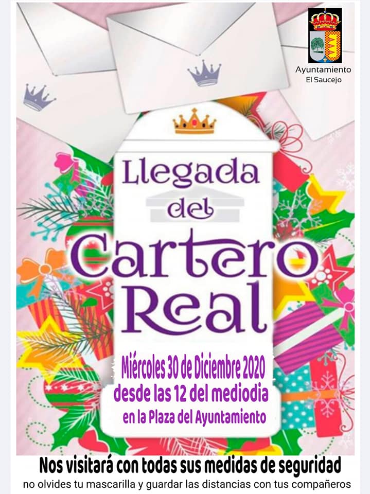 Nos ha llegado esta carta para todos los niños y niñas de El Saucejo, nos visitará el cartero Real en la mañana del día 30 de diciembre en la puerta del Ayuntamiento.