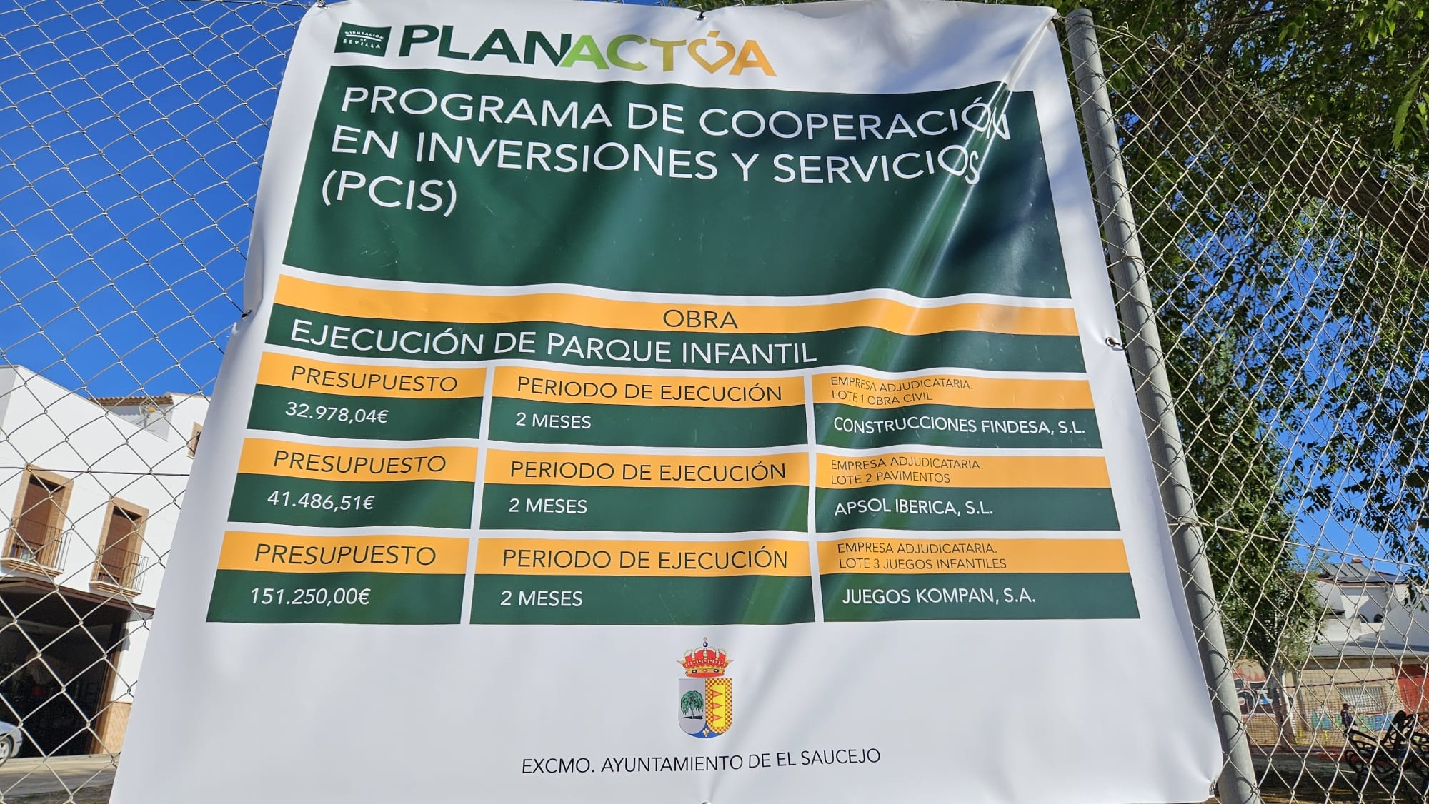 PROGRAMA DE COOPERACIÓN EN INVERSIONES Y SERVICIOS DEL PLAN ANTÚA DE LA DIPUTACIÓN DE SEVILLA Subvención de 225.714,55 €