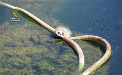 Así las cosas, los agentes del Servicio de Protección de la Naturaleza (Seprona) se personaron en el lugar y observaron cómo el animal se encontraba aún con vida, aunque "exhausto" y "luchando por agarrarse" a una de las mangueras que flotaba dentro del agua.