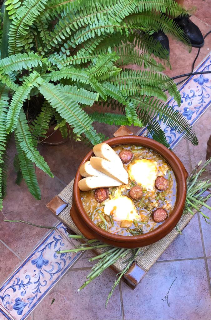 Receta de guiso de espárragos para promocionar El Saucejo y su gastronomía en la 2 de RTVE.