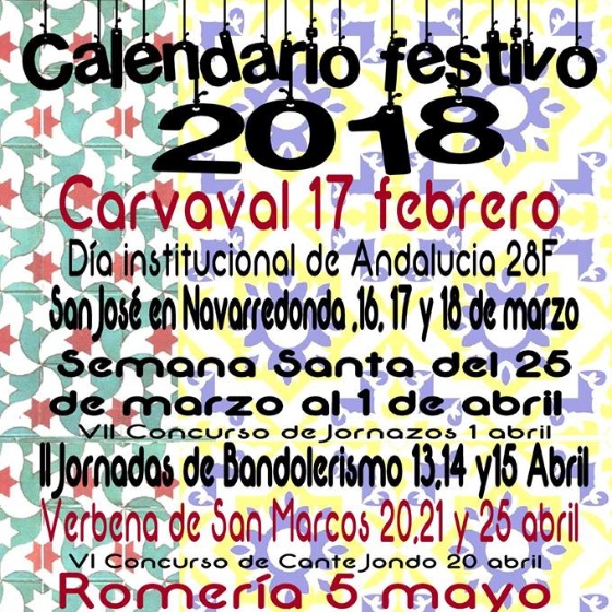 CALENDARIO FESTIVO EL SAUCEJO 2018